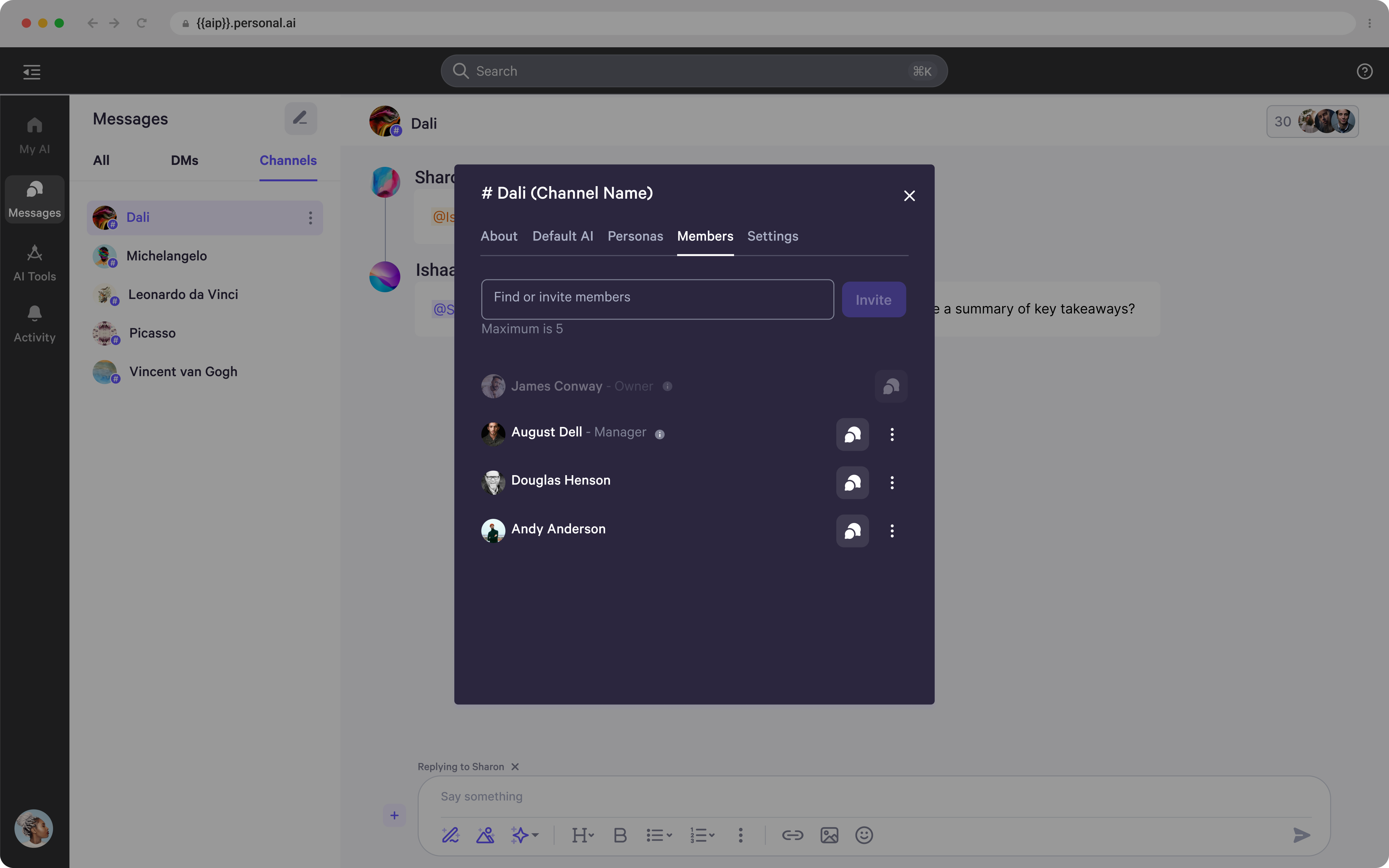 - In the next tab, you can access Persona settings, where you can find or invite other Personas to join the channel.
